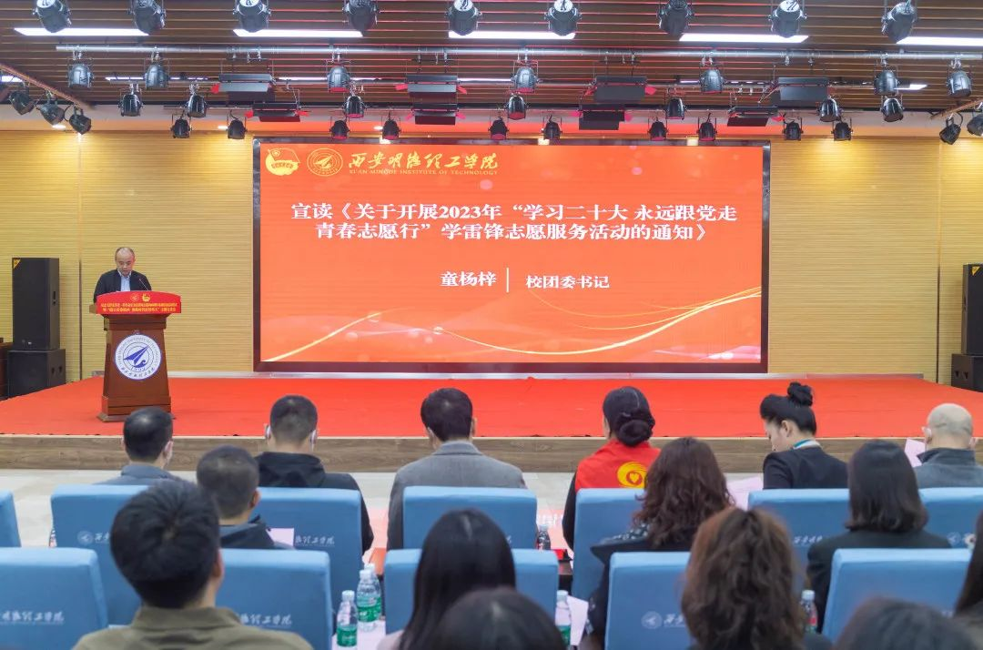 校团委书记童杨梓宣读《关于开展2023年“学习二十大 永远跟党走 青春志愿行”学雷锋志愿服务活动的通知》。