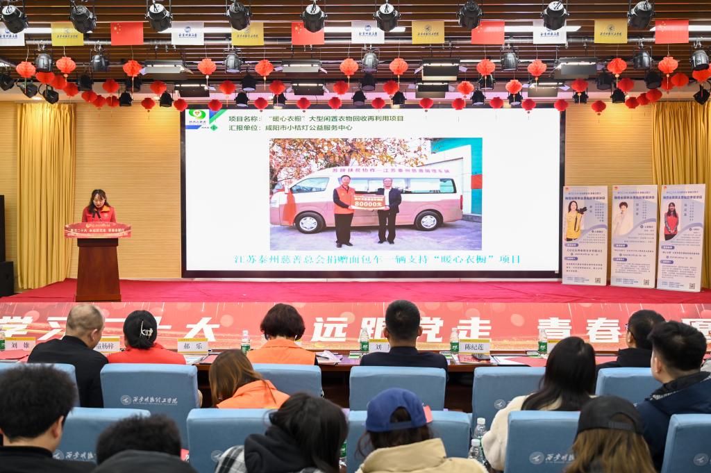 咸阳市小桔灯公益服务中心综合部主任陈纪莲以《“暖心衣橱”大型闲置衣物回收再利用》为主题表达了“暖心衣橱”不仅是一次环保行动,更是一次温暖的传递,并且呼吁大家共同参与,将闲置的衣物变废为宝,为需要帮助的人送去一份关爱和温暖。让爱心在衣物中流淌,让温暖从衣橱传递。