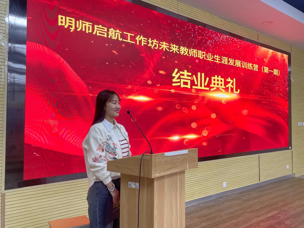 仪式的第三部分,于老师对学员们未来的职业发展寄予厚望。他希望学员们在接下来的学习与实习阶段继续保持热情,勇于探索教学创新,不断提升自身素养,朝着“明师”的目标不断前进。负责人鼓励每位学员将“为人师表”的初心融入日常,既要精于教学,又要关心学生的成长,真正成为学生的引路人。