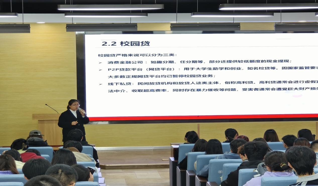 随后的主题讲座中,华西证券西安营业部首席投资顾问张颖,从金融风险辨别出发,以《入局2》等真实案例,通过理实结合的方式向同学们揭示了金融风险的不确定性、相关性、高杠杆性与传染性,提醒同学们尤其是即将迈出校门的同学们增强防范意识、理性投资、理性消费、谨慎借贷,维护个人良好征信,共创健康金融环境。