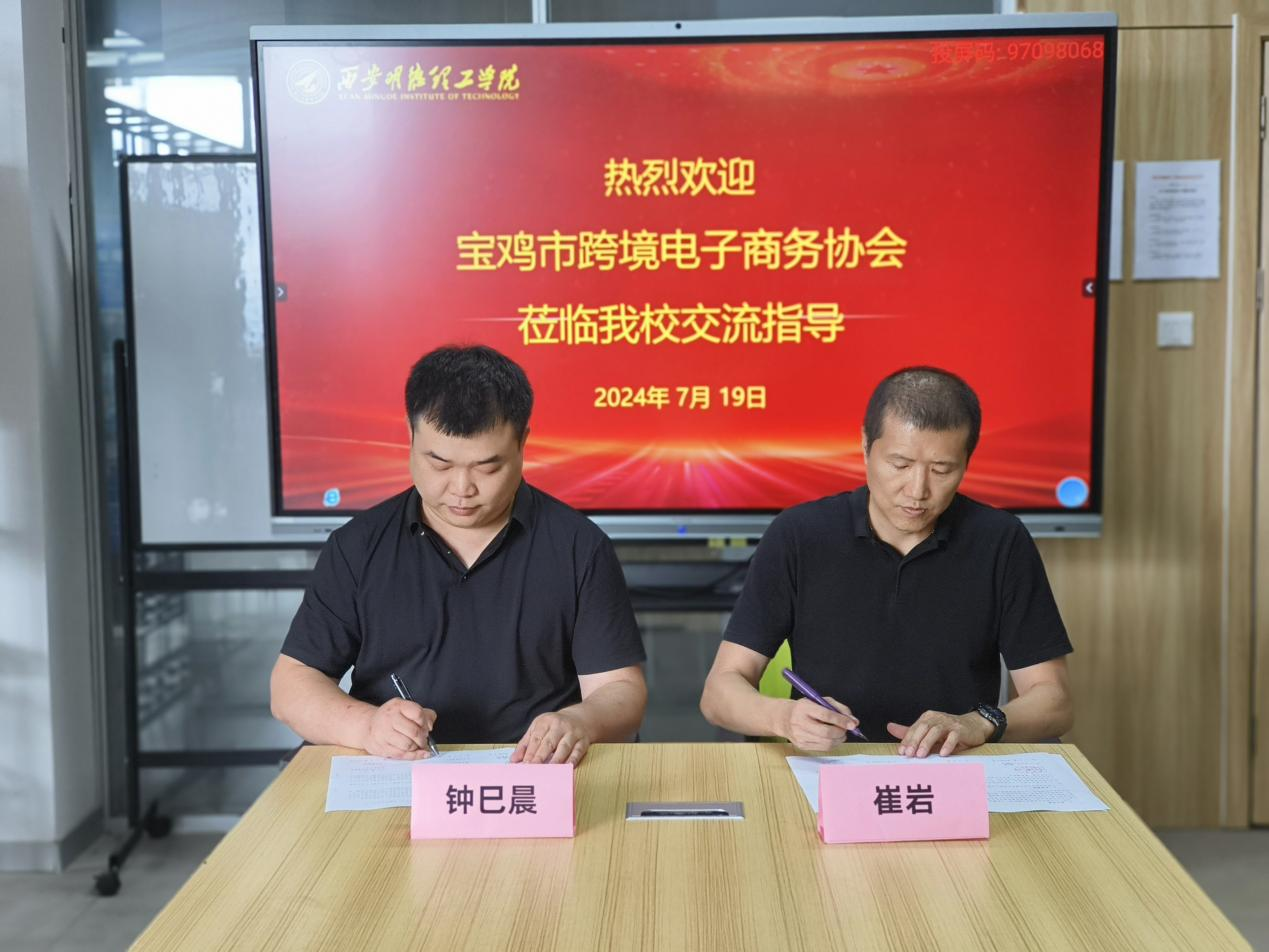 为进一步深化产教融合和校企协同育人新机制,推动校企合作新模式,不断探索人才培养新模式、新途径,赋能校企高质量发展,创新创业学院与宝鸡市跨境电子商务协会,宝鸡市国资委控股公司宝鸡正欣太乙国际贸易有限公司进行互访洽谈相关合作细节。