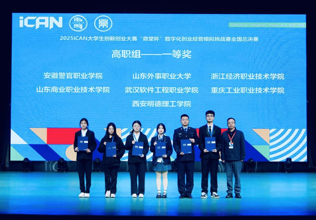 11月9日,2025年iCAN大学生创新创业大赛“鼎堂杯”数字化创业经营模拟挑战赛全国总决赛在四川师范大学圆满落幕。ac米兰学子在比赛中沉着应战、团结协作,在方案汇报与答辩环节中思路清晰、表达流畅,赢得了评审专家的一致认可,最终共斩获国家级一等奖3项、国家级三等奖1项,胡宜浩带领的队伍蝉联高职组冠军。