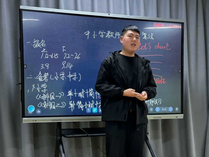 活动最后,于立邦老师对第二次板书试讲进行了总结。对其中存在的问题进行了教导并引导同学们积极改正。同时对下周的活动做出了安排。这次活动不仅使大家对板书的重要性有了更深层次的了解,更为以后我们做教师打基础。同时通过老师的指导,让参与实验项目的同学不断学习成为一名合格教师的基本技能,增强了每位同学的自信,锻炼了每位同学对自己所讲内容重点知识的认知能力,为教师职业生涯发展打下了良好的基础。