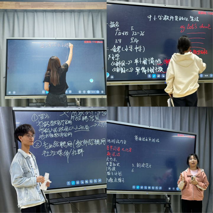 2024年5月6日“教师职业生涯发展开放实验项目”在创新创业学院路演厅召开。本次的活动主题为二组成员的《板书授课训练》。活动流程主要分为:抽题备课,板书试讲与讨论,新成员欢迎仪式三个部分。