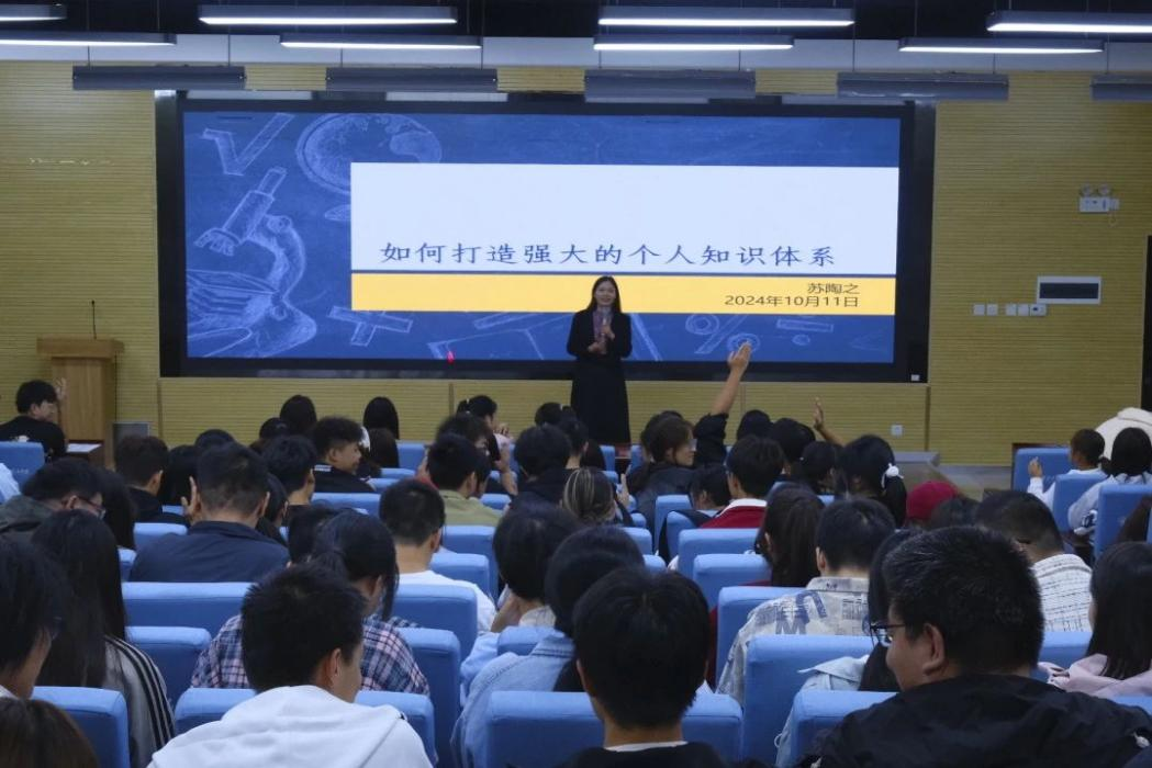 本次讲座特邀资深创业导师苏陶之老师,她凭借丰富的实战经验和深刻的教育洞察,围绕“构建个人知识体系对创新创业的重要作用”,分享了五个高效实用的方法论。这些方法论覆盖了信息筛选、知识整合、实践应用等多个关键领域,为在场学生提供了一份清晰的成长路线图。