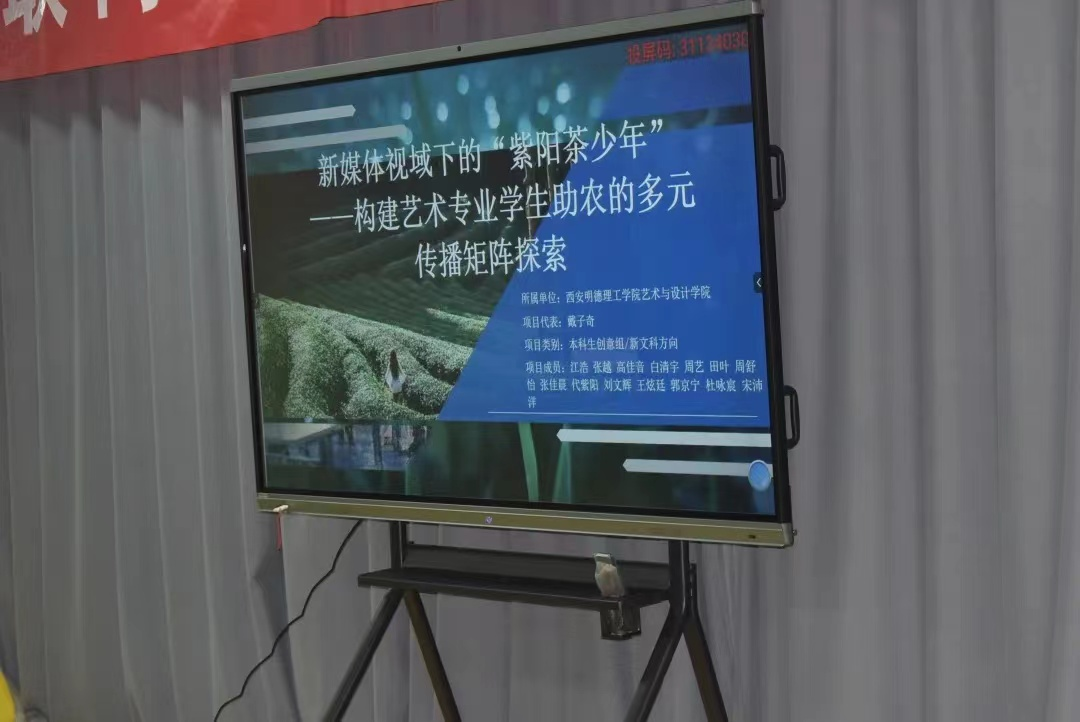 江浩讲到项目选择初衷,不仅仅推广紫阳茶,也是响应国家实施乡村振兴战略的号召。项目围绕国家重点项目,直击行业痛点,发现销售商机,通过改造紫阳茶包装吸引顾客增加销量,团队参与相关纪录片与宣传片拍摄,实地开展双语直播助农等相关助农活动,该项目依托“一带一路”大背景,将紫阳茶推向世界,受到了当地县委书记、县长的重点关注,项目负责人也被签约为安康市紫阳县的形象代言人。