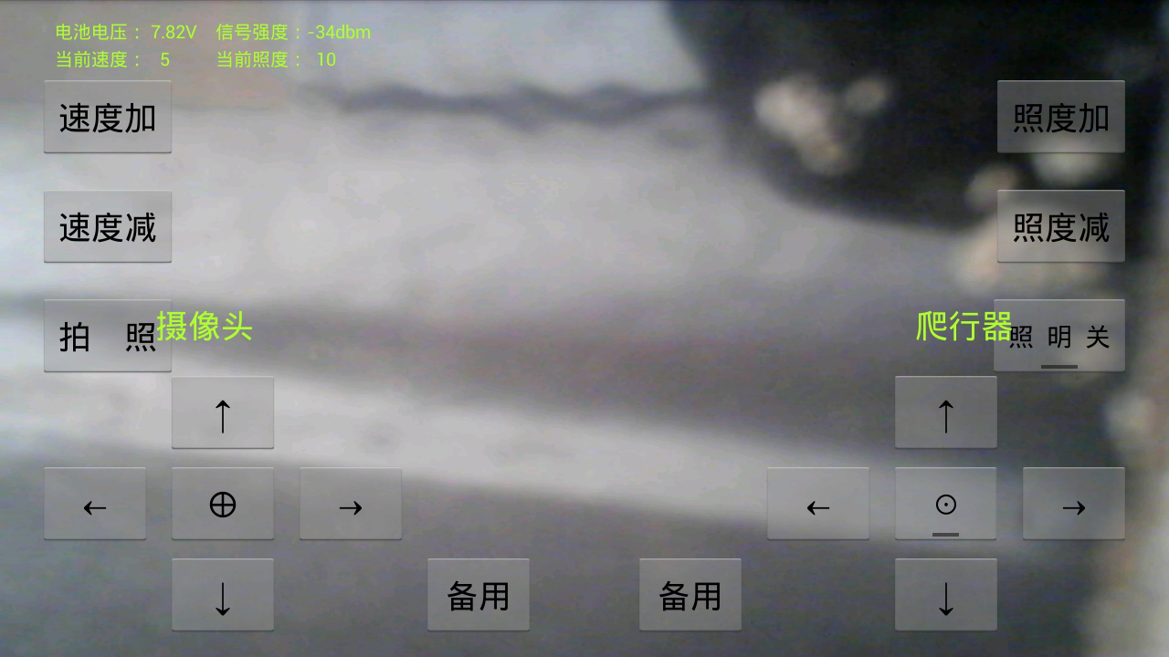 无线成像机器人采用普通智能安卓手机作为控制终端,控制机器人的运动,并实时显示机器人传回来的图像,同时无线成像机器人安装有二自由度云台,可以转动摄像头,调整视角。为了提高在黑暗环境下的成像效果,无线成像机器人的前端安装有亮度可调节的照明灯。该项目可以应用在狭小空间、恶劣、危险等环境成像。
