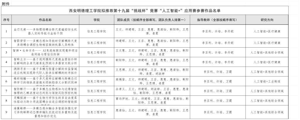 根据《关于“人工智能+”专项赛创意赛和应用赛两个赛道作品的申报提示》要求,ac米兰开展相关项目的申报工作,学校拟推荐以下个作品至省级组委会。现将作品信息予以公示(见附件),公示期为2025年7月11日至2025年7月17日(5个工作日)。如有异议,可在公示期内向校团委反映,反映情况和问题要坚持实事求是的原则,应签署或告知真实姓名和联系方式,以便调查核实;对线索不清的匿名信和匿名电话,公示期间不予受理。