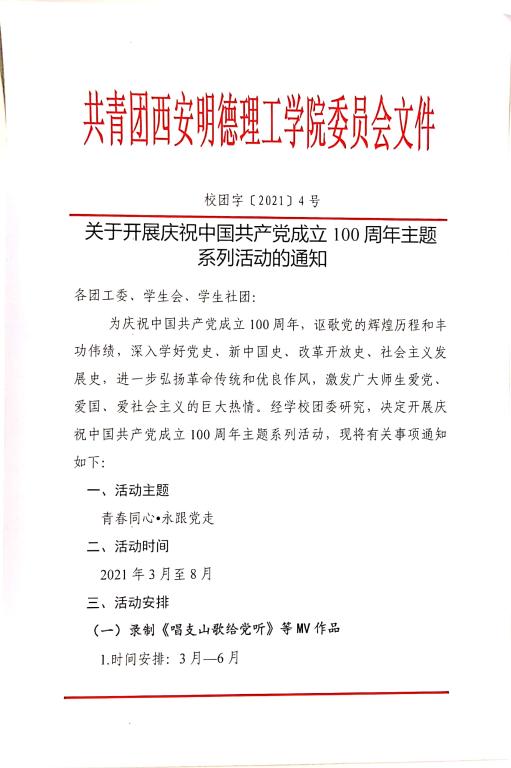 关于开展庆祝中国共产党成立100周年主题系列活动的通知