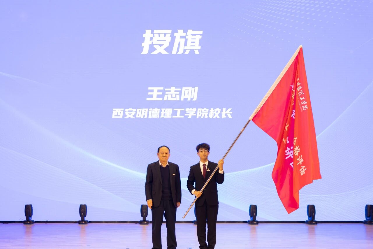 校长王志刚教授为校级学生宣讲团授旗,党委书记马川鑫教授为各院级宣讲团代表颁发聘书,标志着ac米兰本科教学工作合格评估学生宣讲工作全面启动。