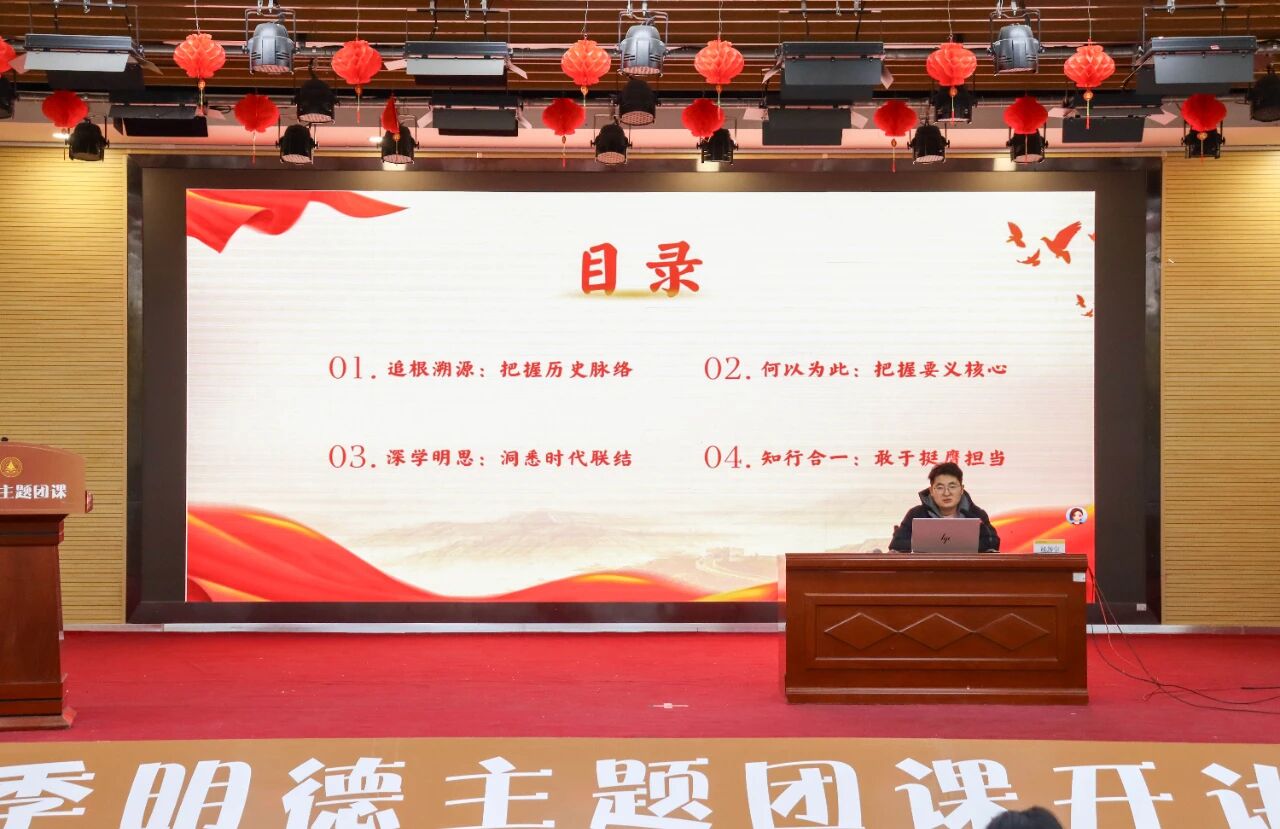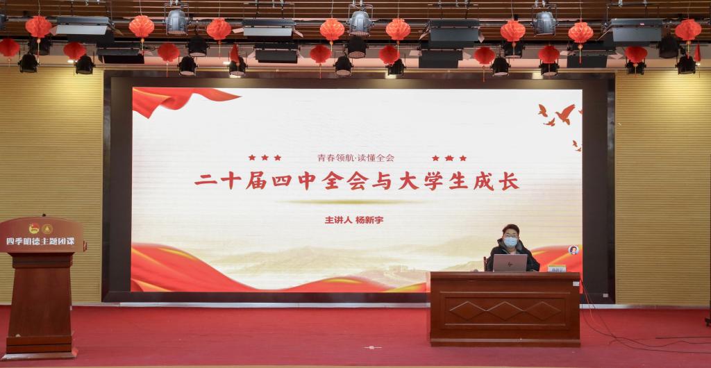 12月3日晚,明德四季主题团课第五期《青春领航·读懂全会——二十届四中全会与大学生成长》在建德楼203报告厅顺利举行。本次活动特邀经济与管理学院团委书记杨新宇担任主讲,围绕二十届四中全会精神,结合国家发展蓝图与青年使命,为同学们带来一场内容充实、思想深刻的主题团课。