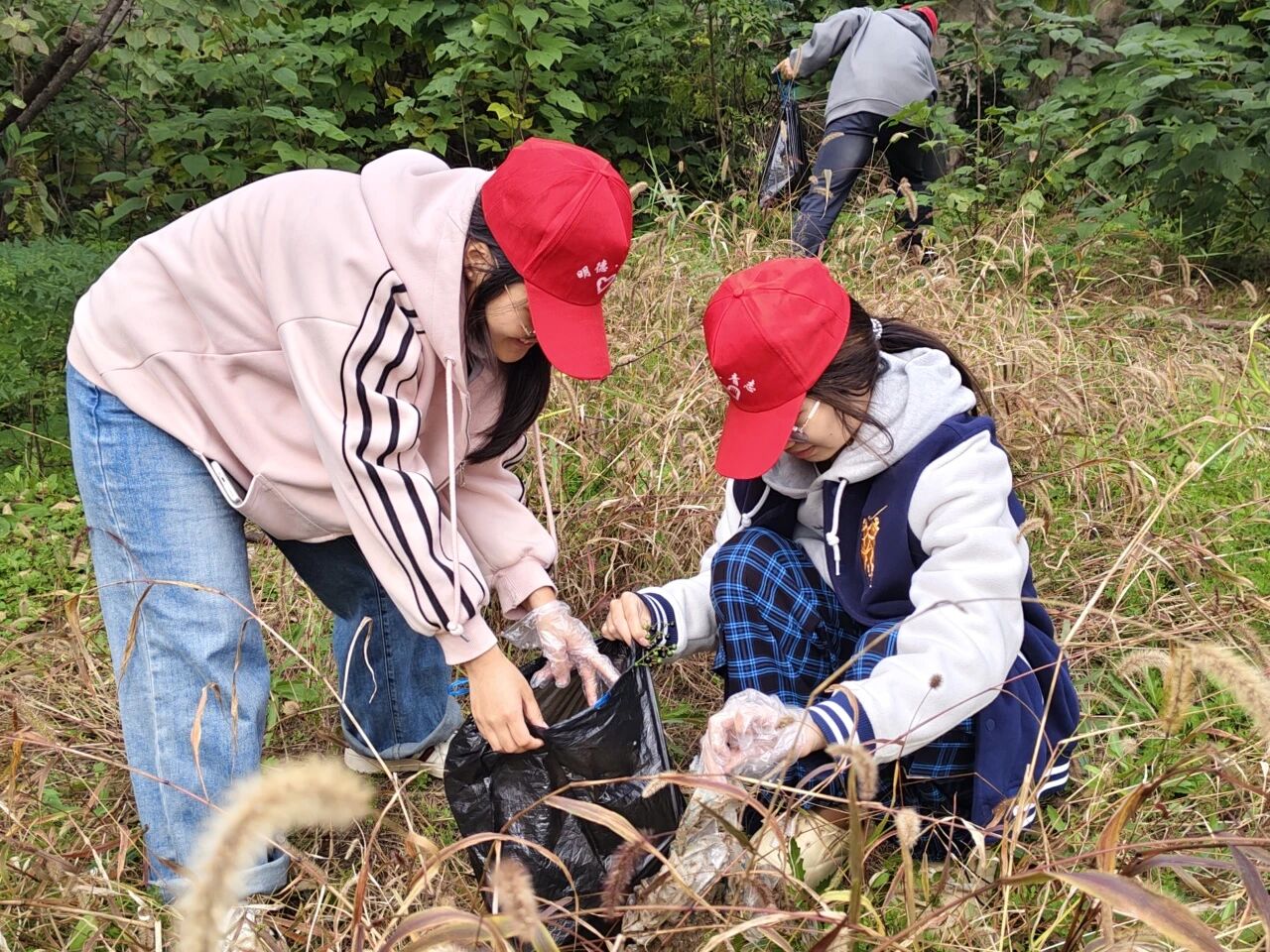 活动伊始,志愿者们两人一组,有序领取塑料袋与手套。在明确分组与任务后,志愿者队伍整齐出发,走出校门,开启了垃圾清理工作。
