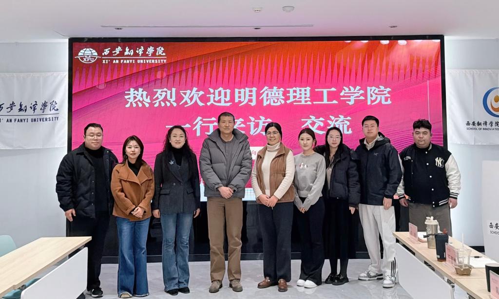 1月13日,创新创业学院副院长崔岩带队,一行赴西安翻译学院开展双创教育调研交流。西安翻译学院创新创业学院相关负责人与会座谈,双方围绕双创教育高质量发展核心议题,在课程体系建设、竞赛机制优化、微专业培育、创业孵化赋能及校企合作深化等领域深入研讨、互学互鉴。