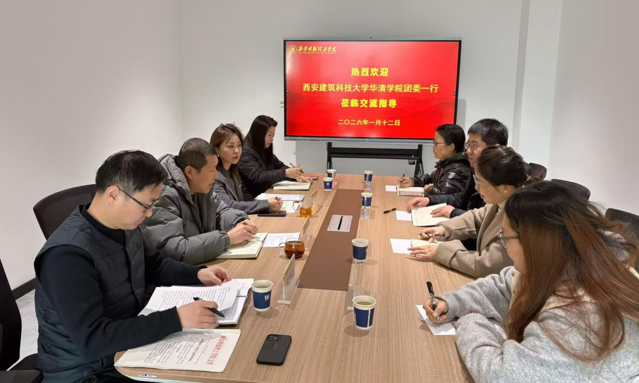 1 月 12 日,西安建筑科技大学华清学院团委书记李秋丽一行四人莅临我院,围绕创新创业教育工作开展专题调研交流。我院副院长崔岩及相关教师代表参与座谈,双方聚焦双创教育高质量发展核心议题,互学互鉴、共话合作,为校际双创育人协同发展奠定坚实基础。