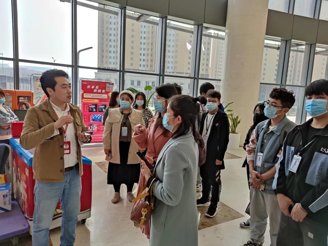 京东物流教育产业平台西北区负责人吴亚京热情接待了老师和学生们,并对京东物流的企业文化进行了详细地讲解,带领大家参观了京东航天直播基地和办公场地等区域。