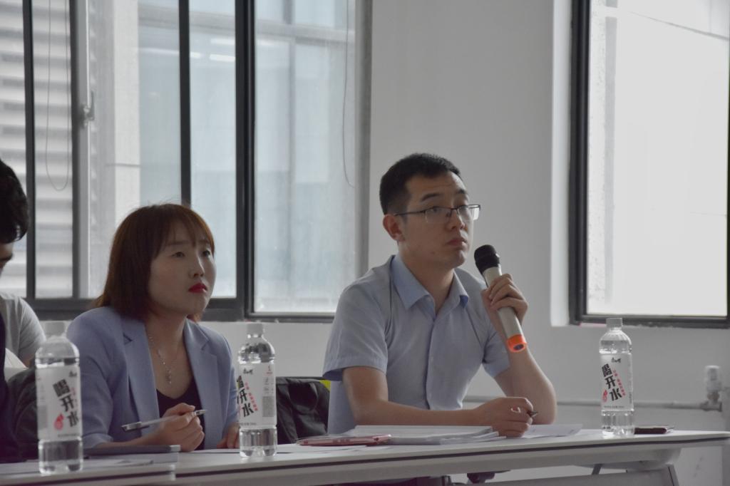 此次培训会各个小组按照顺序依次进行路演,主讲人通过与搭档配合,结合PPT对团队项目进行完整介绍。随后由专家对项目有关情况进行提问,并对其项目中存在的问题进行指正,提出解决办法。最后,各位评委和部分同学进行了深入的交流。