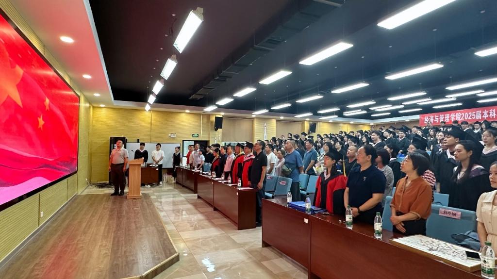 何文举代表学院进行致辞,向圆满完成学业的毕业生们表示热烈祝贺,向倾心育人的教师和无私支持的家长致以衷心感谢。他回顾了经济与管理学院近年来在专业建设、人才培养、管理服务、科学研究、产教融合等方面的成绩,分享了优秀学子的突出事迹,激励同学们向榜样学习,立大志、明大德、成大才、担大任,以青春之火,传承明德人的精神特质,到祖国和人民最需要的地方建功立业,以实际行动书写绚丽的青春华章。