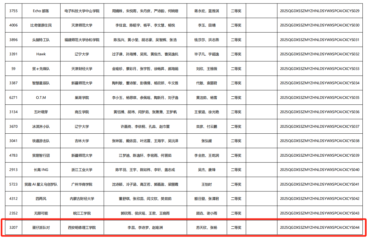 自2025年1月赛事启动以来,与全国309所高校、2279支参赛团队一同历经初赛、省赛层层选拔,经济与管理学院教师苏天欣、张杨所指导的参赛队伍在比赛中展现出良好的专业能力和团队协作精神,以陕西省一等奖的成绩进入总决赛,同来自全国高校的105支队伍进行角逐,最终获得了国家级二等奖。经济与管理学院教师林冰、张杨、苏天欣指导的其他两支参赛队伍也分别获得陕西省二、三等奖,充分体现了学校人才培养质量和明德学子积极进取的良好精神风貌。