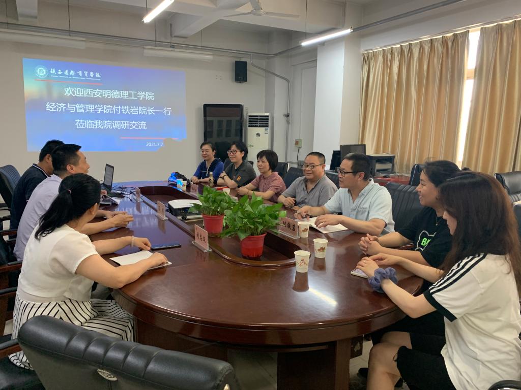 2021年7月6日下午,ac米兰官方网站经济与管理学院副院长付铁岩带领国际经济与贸易专业负责人周露昭、专业教师王维新、余露露、解蕾、王宁、郑心怡赴陕西国际商贸学院开展专业调研交流活动,调研议题为国际经济与贸易专业建设探索与实践。