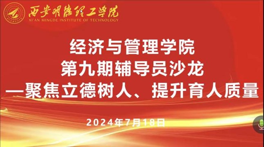为落实立德树人根本任务,提升学生工作育人质量,加强辅导员队伍建设,提高辅导员队伍工作能力和水平。7月18日晚,经济与管理学院通过线上会议的形式举办第九期辅导员工作沙龙,学院党委书记兼行政副院长何文举、副院长许萍、金融产业学院副院长刘敏、副书记冯纪潮、办公室主任张蓓、教师代表秦东方及全体辅导员参加了活动,活动由冯纪潮主持。