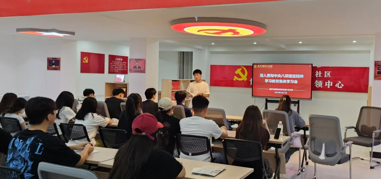 本次专题学习会的开展,进一步深化了支部学生对中央八项规定精神的理解,强化了学生们的纪律意识,经济与管理学院学生党支部将持续深化学习教育成果,引导青年学生以作风建设的新成效推动学院各项工作再上新台阶。