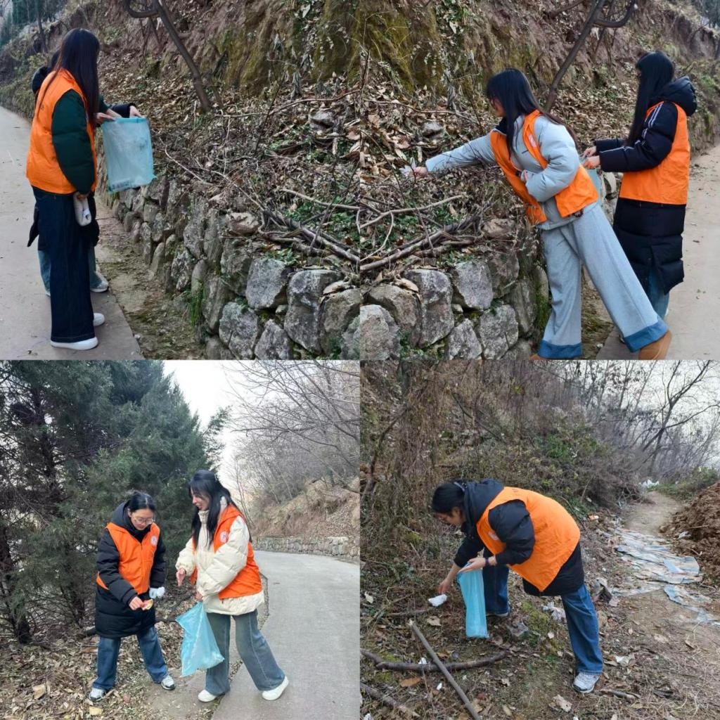 经过前期校、村对接,在经济与管理学院学生第一党支部书记罗夫惠与姚家滩村党支部书记李小鹏带领下,组建了学生志愿者服务队,前往沣峪口开展“守护秦岭翠脉”活动。活动现场,全体志愿者精神昂扬、行动有序,配备专业清洁工具,沿山区路径开展环境清理。针对沿线散落的塑料袋、饮料瓶、食品包装袋等常见生活垃圾及潜藏于草丛、石缝间的烟蒂、纸屑等废弃物,志愿者们进行了细致排查与全面清除,确保整治无死角、区域全覆盖。尽管天气寒冷,队员们仍始终保持饱满热情与严谨态度,以实际行动生动践行“奉献、友爱、互助、进步”的志愿精神,彰显了新时代青年大学生的责任意识与实干作风。