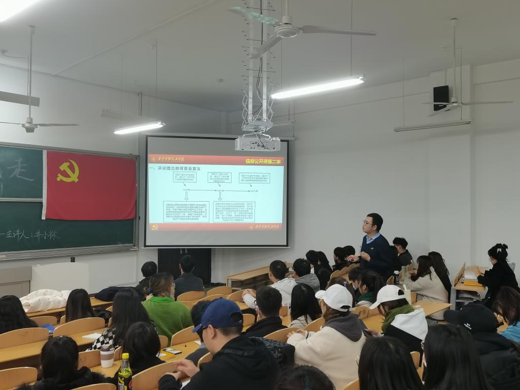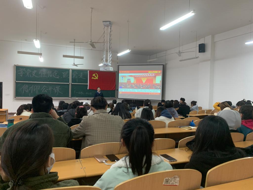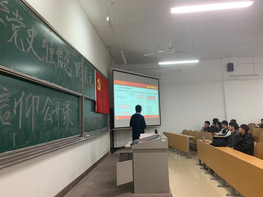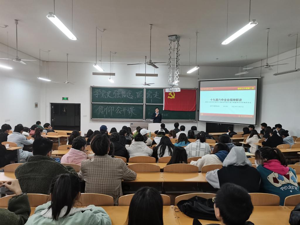 在深入学习贯彻党的十九届六中全会精神之际,经济与管理学院于11月25日晚在立德楼203举办第二季“学党史、强信念、跟党走”信仰公开课。学院部分入党积极分子及共青团员聆听了本期公开课。