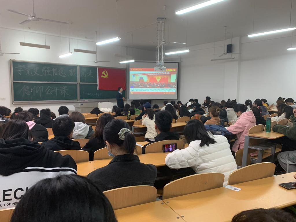 课前,学生第一党支部书记罗夫惠就第二季信仰公开课教学安排向同学们做了说明。紧接着,学生第三党支部书记井小林向在场的同学们讲了题为《十九届六中全会精神解读》的公开课,带领大家从《中共中央关于党的百年奋斗重大成就和历史经验的决议》提出的背景及其意义、主要内容和对当代青年的启示等三个方面重点学习了《决议》。讲课过程中,井小林结合党的百年奋斗历程和取得的伟大成就鼓舞学生斗志,引导他们要始终坚定理想信念,怀着“请党放心,强国有我”的青春誓言接续奋斗。在场学生纷纷表示,将个人理想融入党和国家的事业发展中去,矢志奋斗、积极进取。
