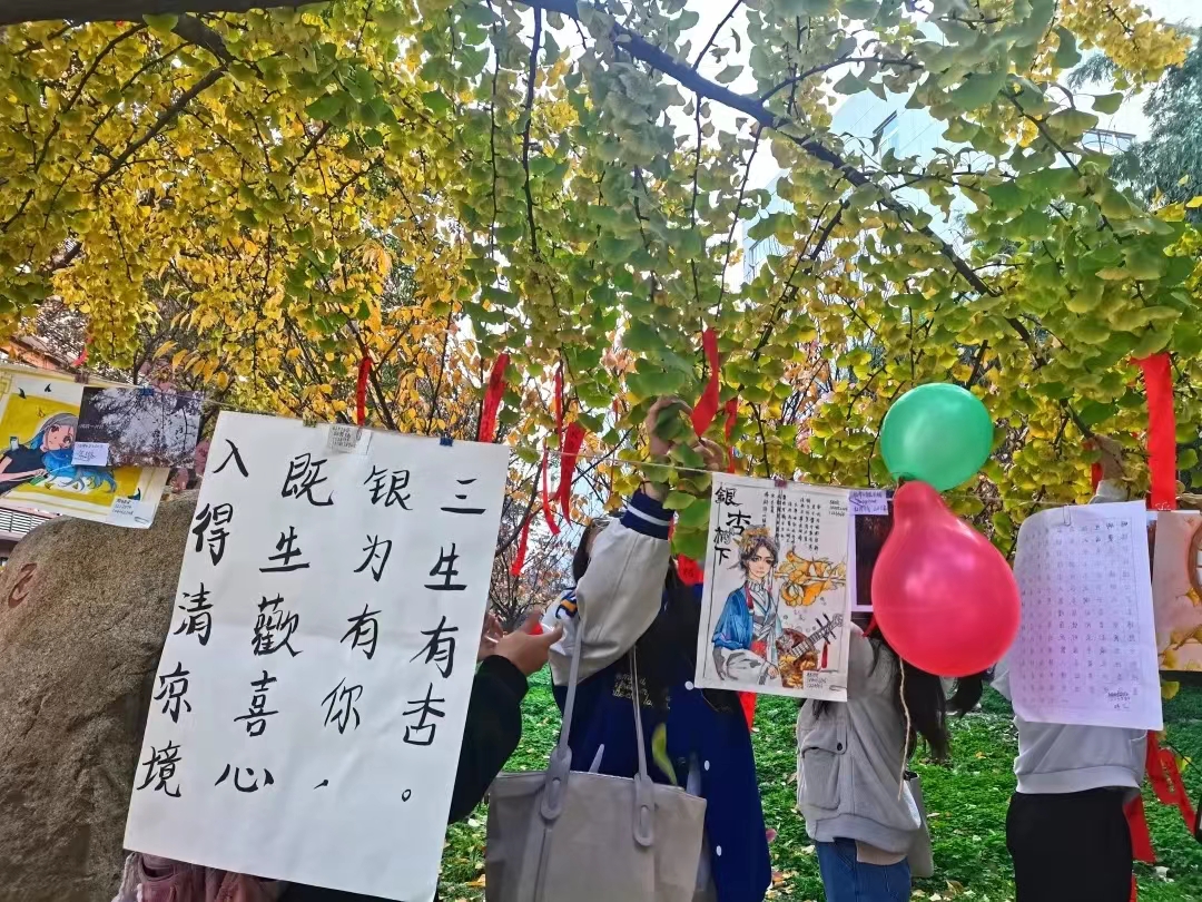 第五届经济与管理学院“银杏艺术节”于2022年11月15日正式开始。银杏秋天披金衣,走在校园中,翩翩落下的银杏叶似乎正展示着秋天魅力。行走在芳菲路上,飞舞的银杏树叶瞬间把你拉进秋的世界,各种各样的创意活动也让同学们亲身感受秋的绚丽。