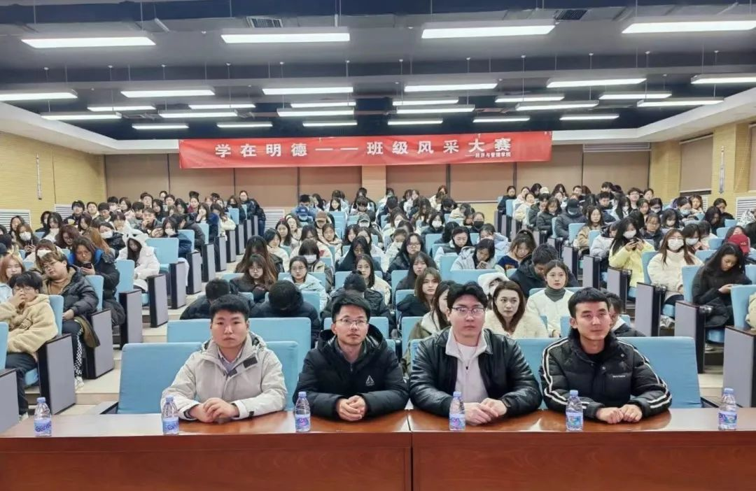 为加强校园文化建设,用优秀校园文化助力学生全面发展,展示班级建设成果,打造“一院一品”特色项目。经济与管理学院于2024年1月10日在建德楼201举办“学在明德——班级风采大赛”,高等职业技术学院团委书记郭庆、辅导员高喜,经济与管理学院团委书记卢宝全、辅导员张朋担任评委,经济与管理学院2022、2023级学生代表200余人参加了活动。