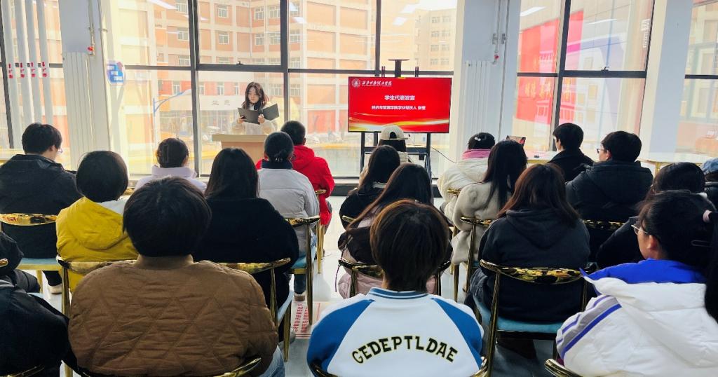 启动仪式上,罗夫惠详细介绍了学业帮扶活动开展的背景、目的及学业帮扶工作实施方案,做到有的放矢、因材施教,为同学们的学业进步、成长成才提供有力保障。紧接着,学业帮扶人代表张莹结合在数学Club社团的帮扶经历,从个人收获、帮扶安排等方面作了分享。作为学业帮扶活动的参与者,她将通过个性化、精准化帮扶措施,帮助同学们取得学业上的进步,营造良好学习氛围。最后,冯纪潮做了总结发言,对此次学业帮扶活动给予了高度评价与殷切期望。他谈到,学院已构建起以“三全育人”为核心,融合“九位一体”的学风建设顶层架构,鼓励学生参与学业帮扶结对活动,发挥朋辈辅导的力量,希望学院学生党员、入党积极分子们切实履行帮扶责任与义务,以先进带后进,帮助同学们解决学习过程中遇到的困难和问题,在学院形成“比、学、赶、帮、超”的学习氛围。