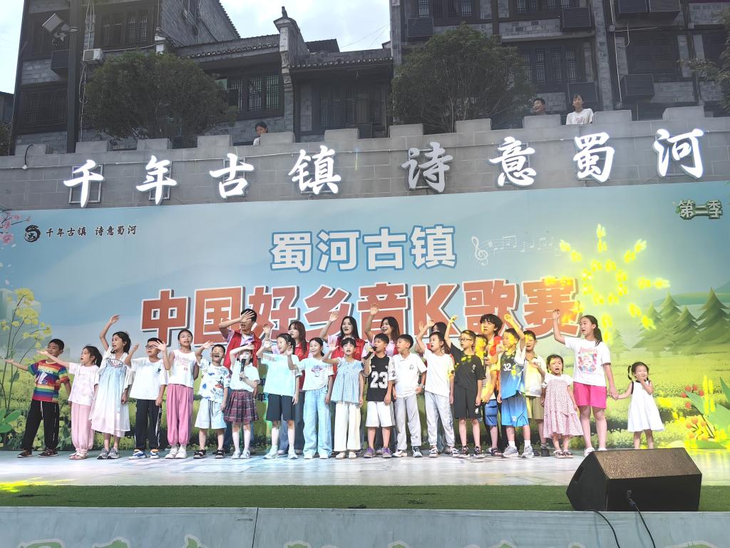 实践队将“传统文化体验”与“古镇研学”相结合,通过黏土捏塑、扎染、脸谱绘制等手工体验活动深化传统文化认知。联合蜀河镇人民政府开展“古镇巡游”活动,领略古镇风土人情、厚重文化底蕴,队员们体验了拓印、木板刻画等非遗技艺。举办了第二季“蜀河古镇中国好乡音k歌赛”, 队员与孩子们齐唱歌曲,迅速点燃现场气氛。正如一位队员在日记中所写:“我们不仅要传承地域文化,更要增强乡村认同。让这些老建筑、老技艺被更多人知道,这就是我们的责任。”
