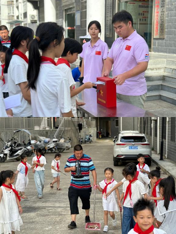实践队将“传统+创新”理念融入体育课程设计,激发乡村儿童运动热情。在社区广场上,队员们化身活力教练,一招一式地教授标准广播体操动作,广场上跳跃着青春节奏。除此之外,还组织开展了丰富多彩的“童心筑梦·快乐成长”主题游园会活动,在“二人三足”“背靠背运球”等项目中,小朋友的笑声、加油声,与偶尔跌倒后立刻爬起的坚强交织,生动诠释团队协作魅力与奋力拼搏的体育精神。