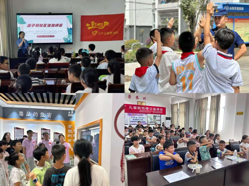 为营造安全欢乐的假期环境,实践队围绕暑期交通安全、防溺水安全、用电安全等内容,开设系列安全教育课堂,通过知识讲解、互动问答、实践体验等方式,帮助孩子们掌握自护技能。消防安全课上,“蓝帽子叔叔”借助趣味动画、真实案例、互动问答、实践操作及模拟演练,普及消防知识,还现场演示灭火器与消防水带的规范操作,让孩子们在轻松氛围中学会逃生技巧;法治教育课上,镇巴县人民检察院未检干警化身亲和的“法律老师”,结合贴近生活的案例,深入浅出解析校园欺凌识别与防范、网络欺诈抵御等法律常识,悄然播撒法治观念;女童保护课堂上,讲师陈悦通过互动教学和情景模拟,帮助女童正确认识身体隐私部位,学习防范性侵害方法,提升自我保护能力;禁毒小课堂中,实践队带领孩子们走进镇巴中学禁毒教育基地,通过参观、互动实验、情景模拟及 VR 体验等,让孩子们在趣味体验中筑牢禁毒防线。