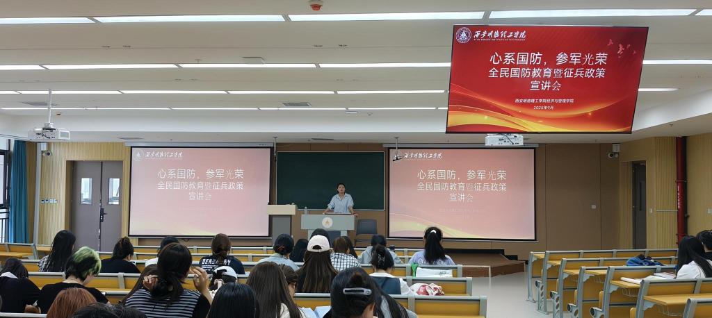 会上,吕盼围绕国防教育价值、中国武装力量构成、大学生入伍优惠政策、退役安置政策及入伍报名条件与流程等方面进行了系统解读。她强调,国防是国家生存和发展的安全保障,大学生应积极履行国防义务,将个人成长融入强国强军伟大事业。吕盼详细介绍了大学生参军入伍系列优待政策,包括免试专升本、考研加分、专项招生计划、学费补偿代偿、转专业优先、就业安置、定向招录等,结合陕西省最新标准,讲解了义务兵家庭优待金、部队津贴、退役金等经济待遇,让学生们直观感受到“学业经济双护航”的政策红利。