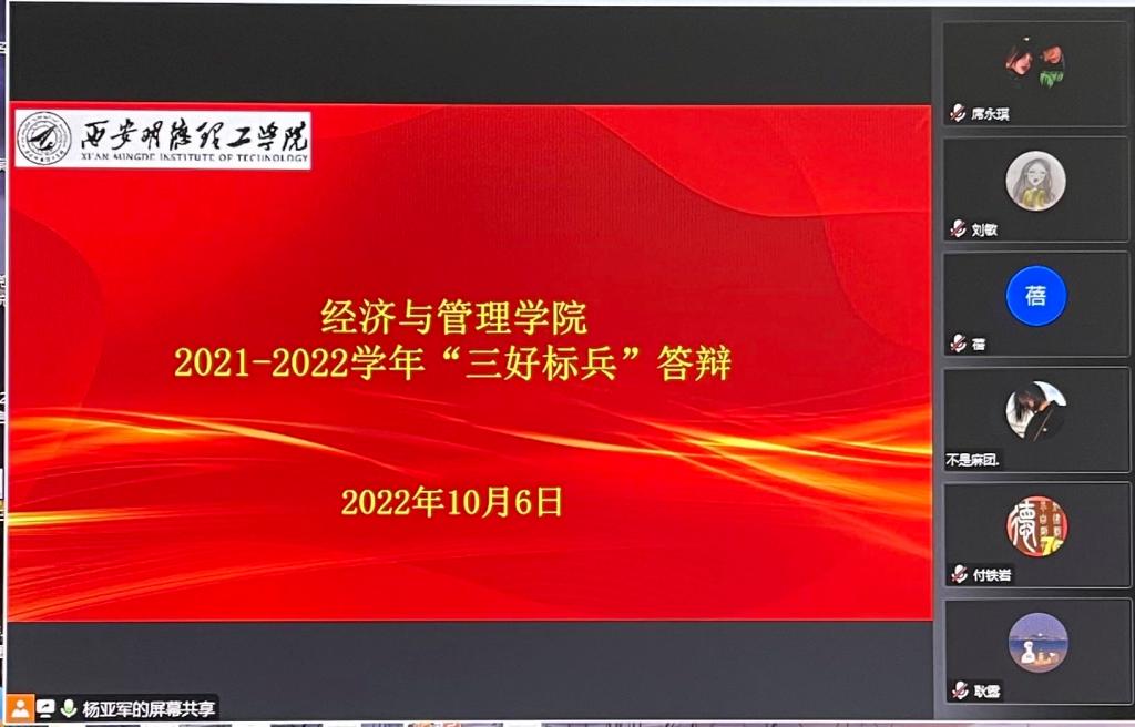 为进一步推进学院优良学风建设,充分发挥奖助育人作用,彰显优秀青年的榜样力量,10月6日下午,经济与管理学院在线上召开2021-2022学年特等奖学金评审答辩会。学院党委书记兼行政副院长何文举、副院长付铁岩、副院长雷娟、金融产业学院副院长刘敏、党委副书记冯纪潮、学院办公室主任张蓓、分团委书记耿露等出席本次答辩会并担任评委。