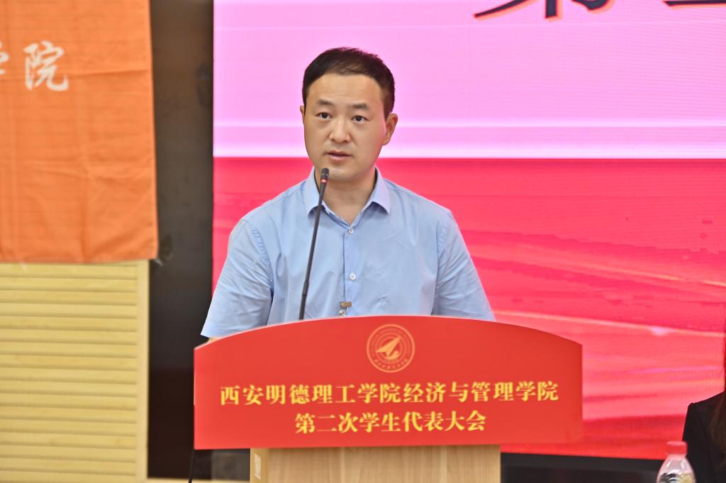 开幕式伊始,经济与管理学院党委书记兼行政副院长何文举讲话。他首先对大会的召开表示祝贺,同时向学院全体同学致以亲切问候与美好祝愿。在过去的一年里学生会成功举办了“银杏艺术节”、“学习二十大、永远跟党走、奋进新征程”主题演讲比赛、“清明祭英烈”党建带团建活动、“弘扬雷锋精神,共筑时代新风”等主题实践活动,对学生会工作取得的成绩和为学院发展做出的贡献给予充分肯定,向新一届学生会工作提出希望。紧接着,ac米兰官方网站校学生会主席团成员李镇秦同学发言。他表示,学代会的召开有助于推进学校基层学生组织的建设,有利于团结带领广大同学为建设具有一定国际知名度的应用型民办大学贡献青春力量。最后,经济与管理学院学生会主席团成员郭子琨同学作了题为“青春逢盛世 奋斗正当时”的工作报告。