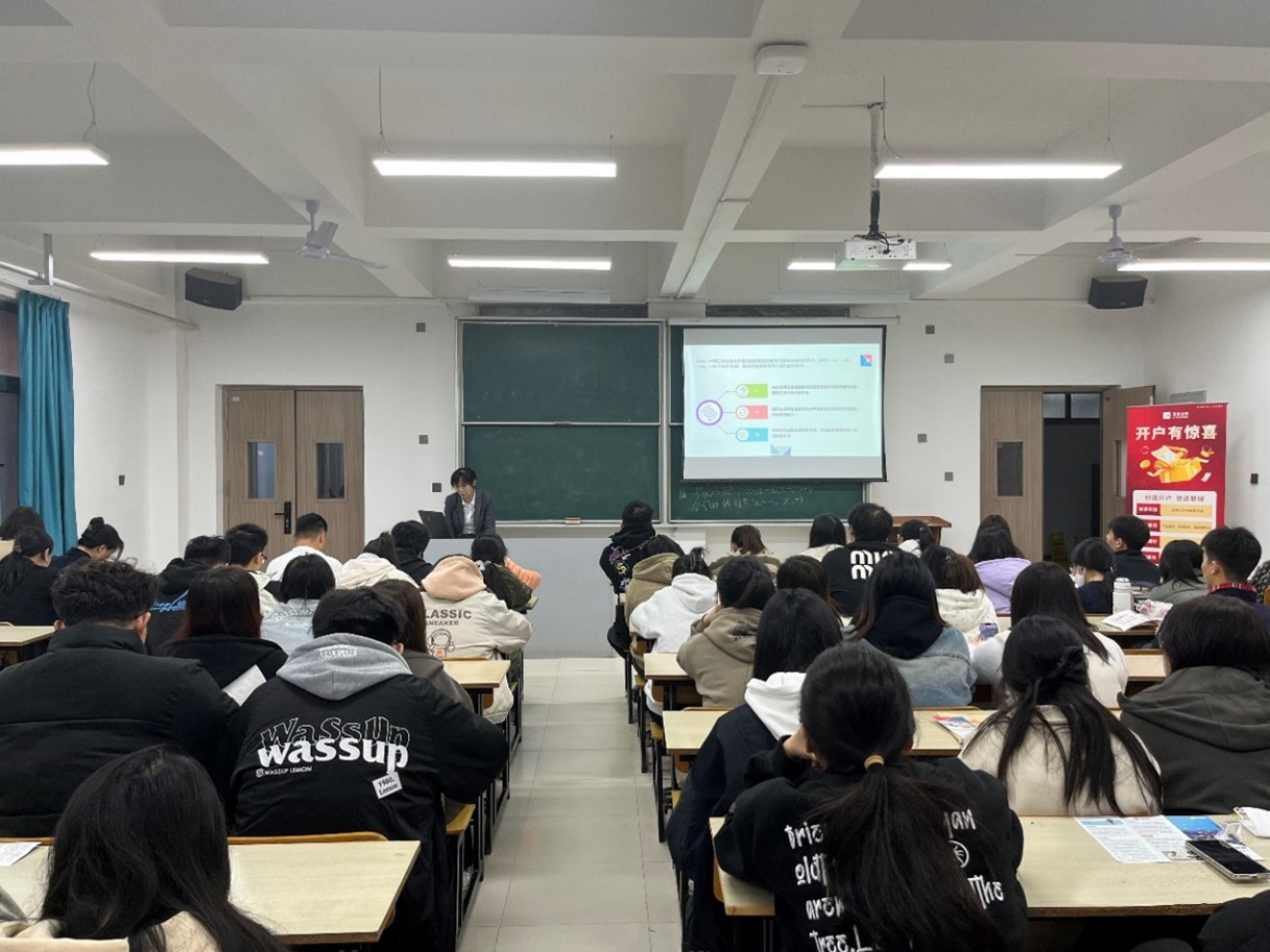 赵佳从金融科技、数字化转型、加密货币、金融监管等多个方面,向学生介绍了证券行业的现状及未来发展趋势,阐述了银行、证券和保险行业的组织架构与具体岗位需求。宣讲会结束后,企业方针对现场同学关心的求职问题进行了耐心解答,现场氛围融洽而热烈。