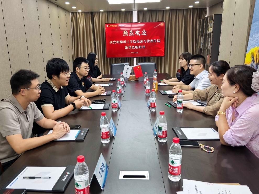座谈会上,郭平南详细介绍了企业的人才发展理念、技术研发能力及对高校合作的开放态度,他表示,企业高度重视与高校在教学、科研、人才培养等方面的合作,愿意在课程共建、项目研究、实践基地建设等方面与经济与管理学院开展务实合作,推动产教协同发展。刘敏代表学院对企业方的热情接待表示感谢,介绍了经济与管理学院的办学定位、办学理念和能源经济专业的建设成果。她表示,当前学院正积极推动“新文科”背景下的专业转型升级,致力于构建具有鲜明能源特色、服务地方经济发展的复合型人才培养体系。此次交流,为进一步整合校企资源、共同打造教学与实践并重的育人平台提供了良好契机。能源经济专业负责人孙丁就专业课程体系设置、学生实践能力培养、产学研协同机制等内容与企业方进行了深入沟通。韩玮、邓文佳两位老师结合自身教学与研究方向,对未来在新能源政策研究、企业碳排放数据分析、绿色项目评估等领域的合作提出了建设性思路。