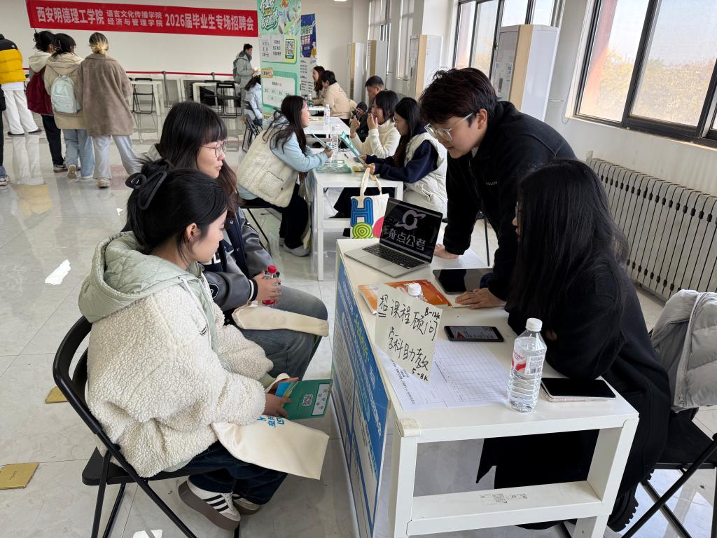为进一步拓宽学生就业渠道,精准对接企业用人需求,搭建校企合作交流平台,11月20日,经济与管理学院联合语言文化传播学院在明志楼南411举办2026届毕业生专场招聘会。陕西兴鼎佳会计师事务所、陕西秦公政通教育咨询有限公司、北京思明启创科技有限公司、西安华飞防务技术有限公司等11家企业参会,提供就业岗位150余个,经济与管理学院2026届毕业生参加了招聘会。