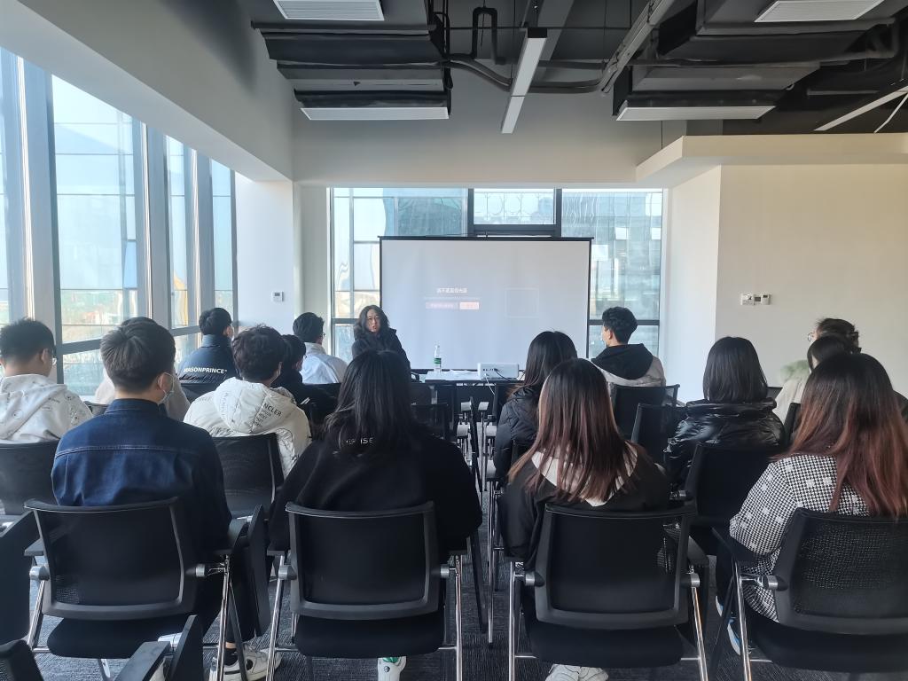 交流伊始,企业人事部负责人李玲瑶对学院师生一行来访表示欢迎,并对学院目前在该单位实习学生的表现给予肯定,两位辅导员对企业的认可表示感谢。随后,师生们在李玲瑶陪同下,参观了企业所处周边环境,办公场地,深入了解该企业具体的业务内容,发展前景,岗位需求等,学生们不时驻足观摩员工的工作内容及业务流程操作,与企业员工进行交流学习。