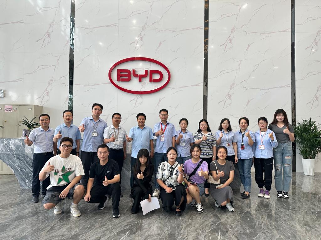 为推动学习贯彻习近平新时代中国特色社会主义思想主题教育走深走实,进一步促进毕业生高质量就业,贯彻落实教育部、省教育厅关于“访企拓岗促就业”专项行动工作部署。在经济与管理学院的沟通协调下,8月18日下午,高等职业技术学院班子成员、毕业班辅导员张叶茹,经济与管理学院党委书记兼行政副院长何文举、毕业班辅导员周佳琪,带领2024届6名毕业生代表赴西安比亚迪汽车有限公司参访交流。