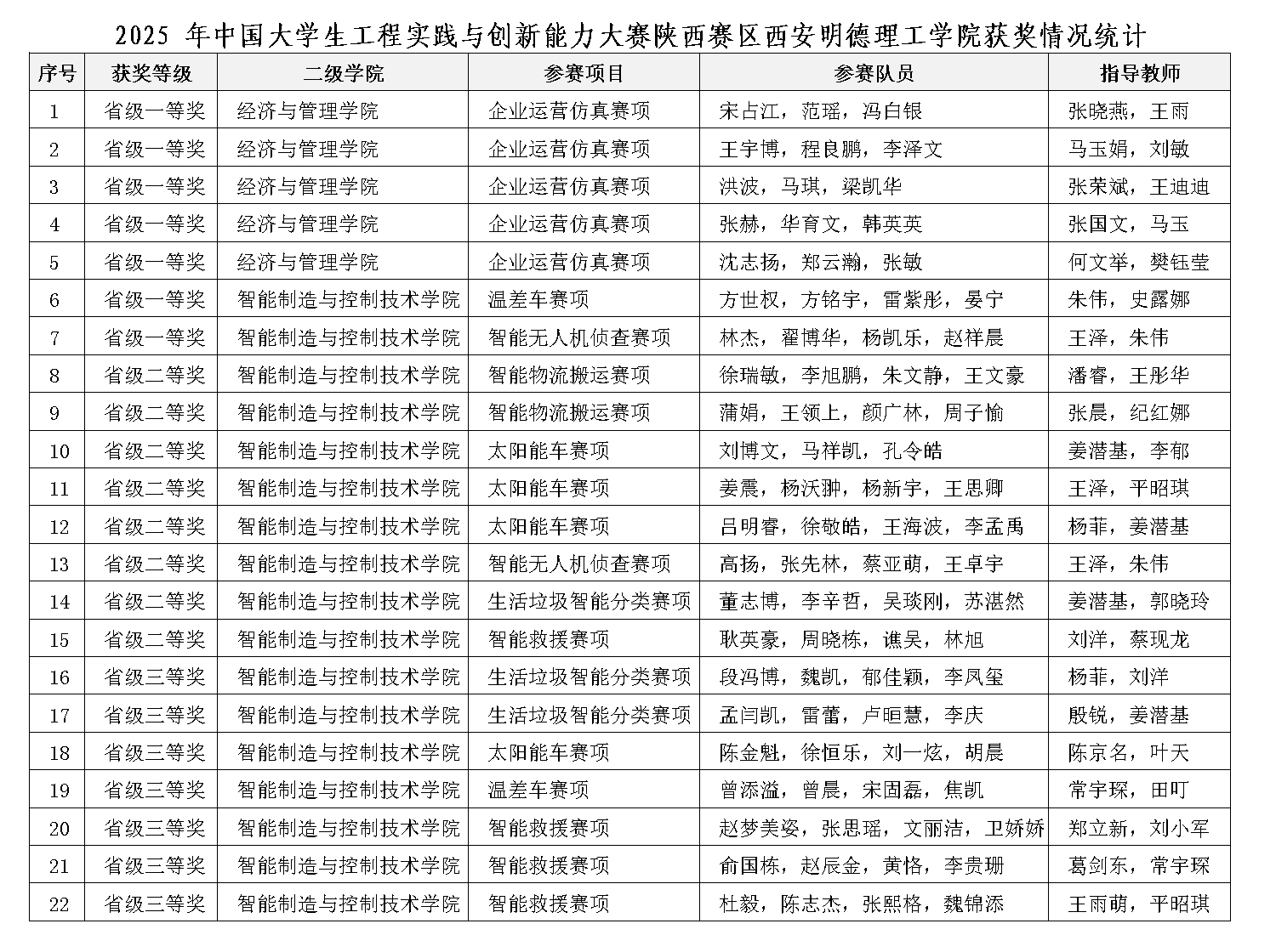 学院在2025年中国大学生工程实践与创新能力大赛陕西赛区竞赛中喜获佳绩