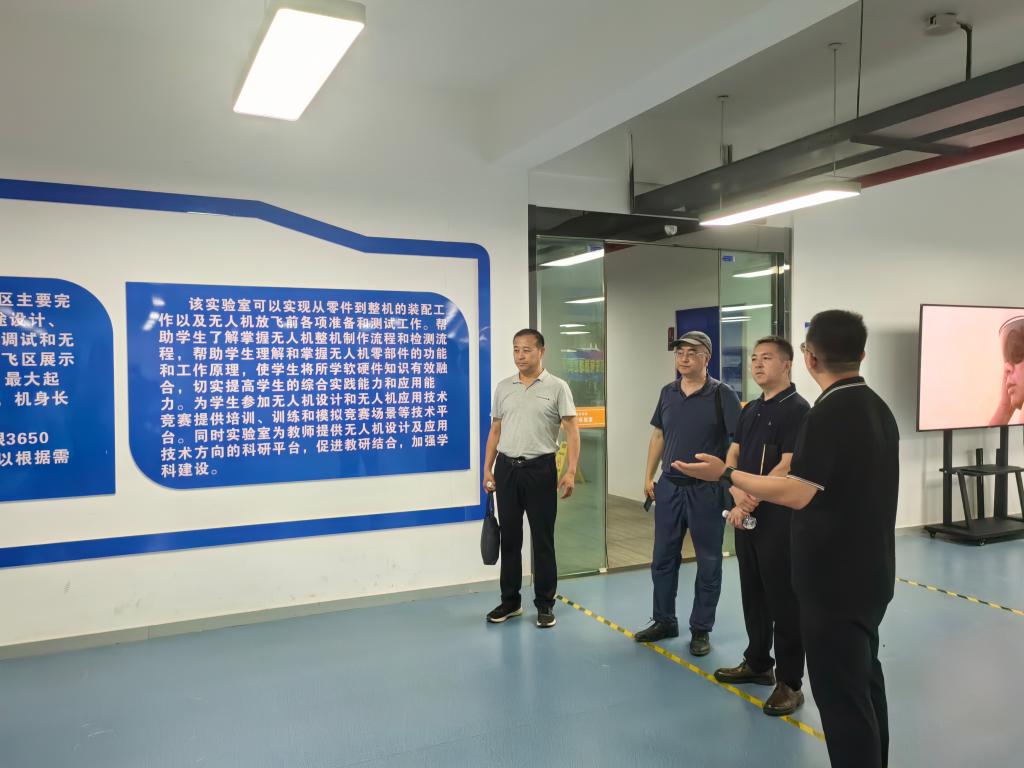 会后,徐鹏杰主任一行在学院领导的陪同下参观了无人机实验室,实验员姜潜基全面介绍了该实验室的教育资源和实践成果。