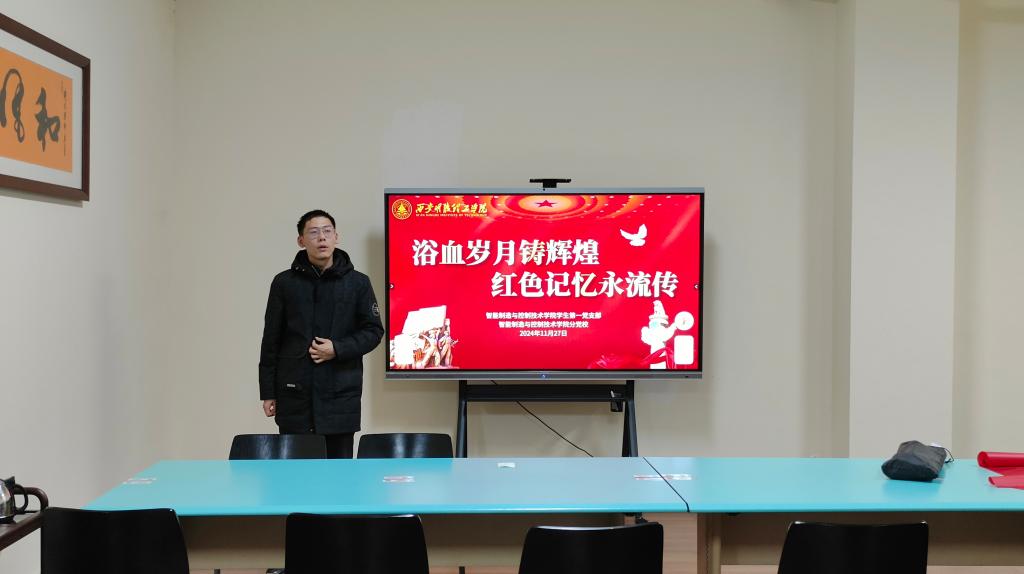 为深入学习贯彻习近平新时代中国特色社会主义思想和党的二十届三中全会精神,深刻领会并传承党的光辉历史与革命传统,进一步凝聚力量、激发动力,坚定理想信念,增强政治责任感和历史使命感。11月27日晚上,学院学生第一党支部在图书馆汇思空间召开“浴血岁月铸辉煌,红色记忆永流传”主题党日活动。党委学生工作部李秋红老师、信息工程学院党校负责人王丹瑶老师、智能制造与控制技术学院杨轶凡老师,以及支部全体党员参加活动,活动由支部书记孙一辰主持。