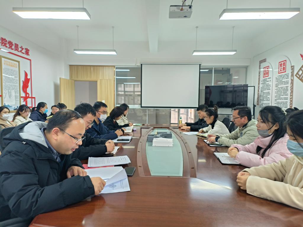 学院党委书记陈雪彬传达了学院召开教学评建工作推进会的会议精神,希望学院教师党员能认真学习领会评建指标要求,对标对表做好观测点支撑材料的梳理归档。
