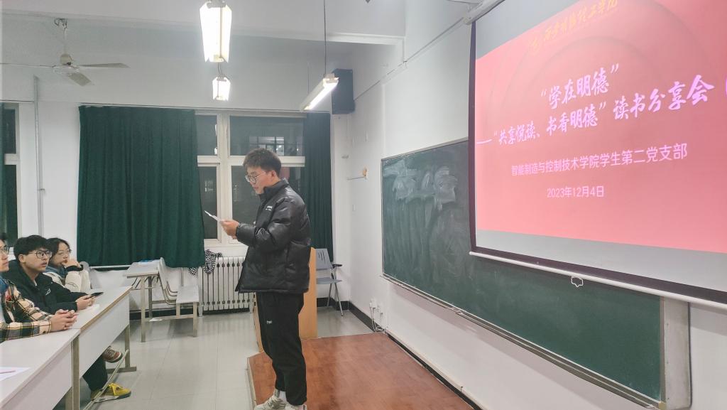 为深入学习贯彻习近平新时代中国特色社会主义思想和党的二十大精神,激励广大青年以读促思、以读促行,做到学思用贯通、知信行统一,12月5日至6日,智能制造与控制技术学院各学生党支部开展“学在明德•读书分享”主题党日活动。