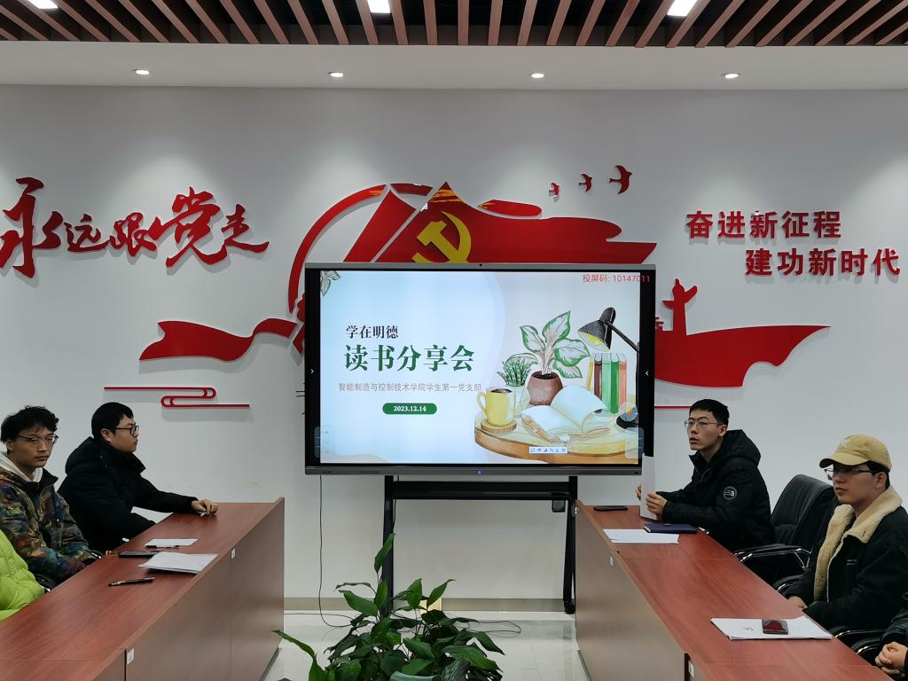 为深入学习贯彻习近平新时代中国特色社会主义思想和党的二十大精神,深入贯彻落实习近平总书记关于教育的重要论述和全国教育大会精神,进一步建设学习型党支部。12月14日下午,智能制造与控制技术学院学生第一党支部在明志楼北108党群服务中心开展第二期“学在明德•读书分享”主题党日活动,活动由支部书记孙一辰主持。