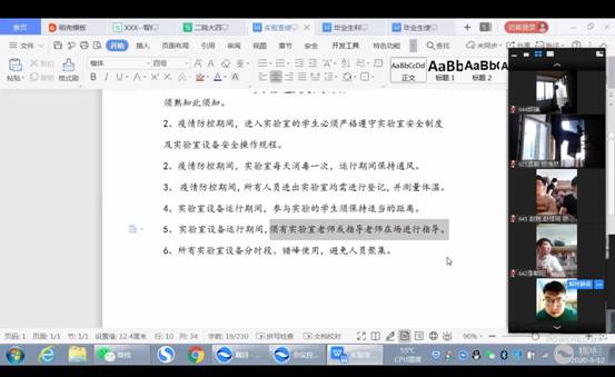 最后,朱延波副院长针对学生毕业论文指导工作做了安排部署,明确学生从返校当日起,毕业设计指导由线上转为线下,师生每周至少一次进行面对面交流。为满足学生的学习需求,我院落实了6间多媒体教室,11间研修室,以及21个相关实验室,倾全院之力助力学生顺利毕业。另外还介绍了疫情期间关于教室、研修室,实验室等场所的使用办法,要求学生使用场地时,要严格遵守相关规章制度,错时错峰,避免人员聚集。