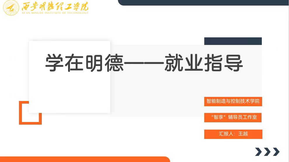 加强新时代高校就业指导教师队伍建设,扎实推进学院就业指导与服务工作,智能制造与控制技术学院“智享”辅导员工作室1127日在明志楼北304开展就业指导交流暨工作推进会学院党委书记陈雪彬、党委副书记曾凯、招生就业中心就业办公室王鹏及学院全体辅导员参加会议,会议由陈雪彬主持